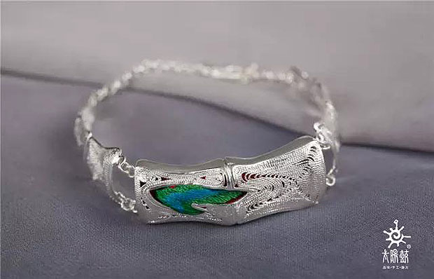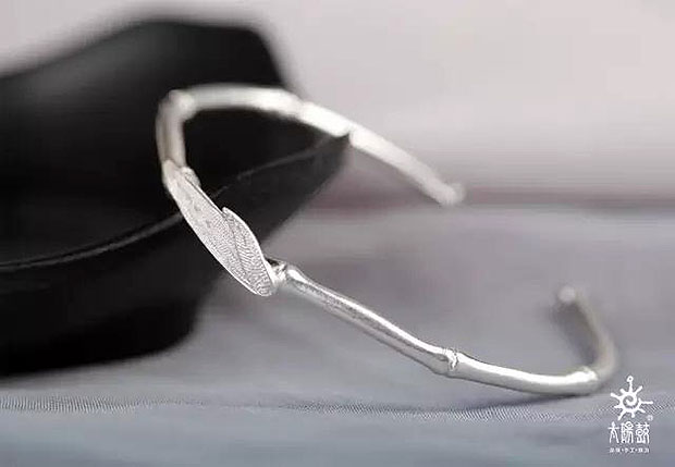 此套银饰作品以竹子为灵感,采用的是传统银饰锻造工艺和传统刺绣纯手工制作。银饰和刺绣积淀着人民的生存智慧和生活美学,不仅入选中国非物质文化遗产名录,在全世界都享有盛誉,然而和全国大多数非物质文化遗产一样,这两项技艺也面临着艺人流失和技术失传的困境。