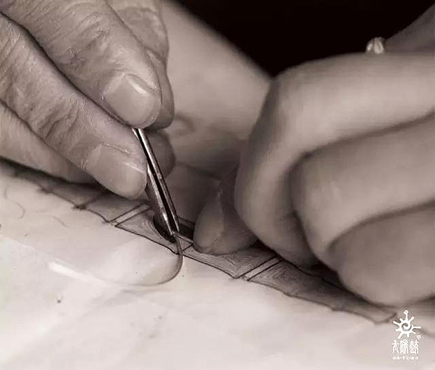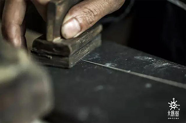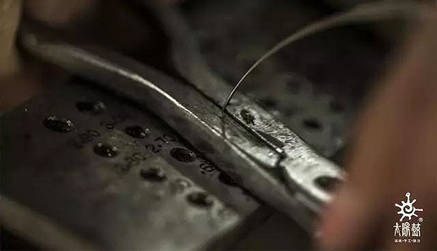 编丝之前先要把银条用特制的拉丝板拉成发丝一般的银丝。