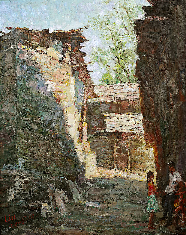 一九八O年,在川美我读大二,张尧从贵州清镇考进川美附中。我在川美是贵州老大哥,也是贵州接待站,凡到川美看展览参观的贵州美术界朋友都会找到我,我作向导、喝啤酒等。为了方便,我占领了教学楼三楼的男厕所(在门上装了把锁就成功占领,系书记看我老大的样子默认了),内间我作画室,外间洗手间作卧室,很独立安静,门口是楼梯口的一个大空间,足以放一大园桌。张尧刚进校,由田世信(贵州美术界朋友)带来找我,意思是关照关照,我与张尧的友谊就此开始。当时在校见面也不多,毕业后我进了贵州工艺美研究所,后张尧进了中工,毕业也到了贵州二轻校,后去了山西,来过研究所两次,一次送他们在北京的展览请柬,一次来买点工艺品送人。