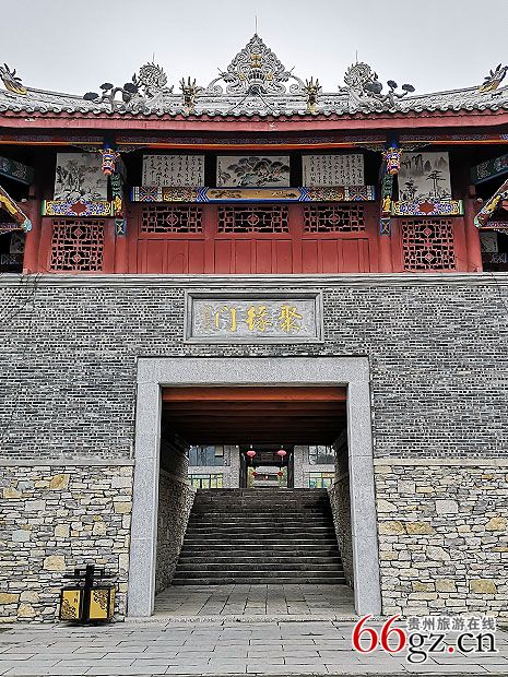 古镇南门定广门是四大城门中最为气势恢宏的一座,历史上,这里曾是扼守贵阳南大门的第一座门户。巨石砌成的城门楼和城墙高大威武,加上城外蜿蜒的石板路和两侧的农田,构成一副壮美的图画,很多青岩古镇的宣传照都是出自这里。