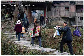 家家户户的亲戚们,便陆陆续续的进了朗德,肩扛手提着鸡鸭鱼肉来过节的乡亲.