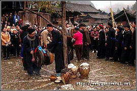 家家户户都要杀猪,祭牯臧.亲戚多的人家要杀6~7头猪,等到亲戚走时要带上一条猪腿回家.