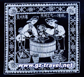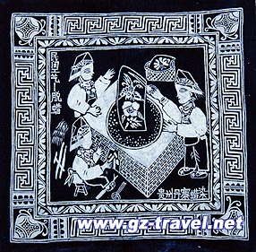 这一带的苗族女性,从六七十岁的老媪到十一二岁的少女都能做蜡染。姑娘小时候,当母亲的就给她们传授了蜡染技艺,长大后蜡染技艺就相当娴熟了,从中便脱颖而出许多蜡染能手,代代相传,长盛不衰。