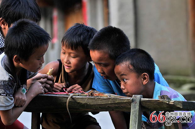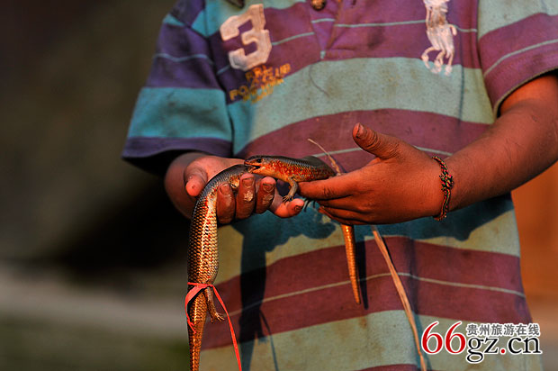 待孩子们走近,我们好奇的一股脑扛着相机跑去与他们攀谈起来,而他们似乎也异常兴奋,不仅没有一点与陌生人交谈时的害羞与扭捏,而且还争先恐后的跟我们一行人述说他们的战绩。“蜥蜴是我们在田里面捉的,每人都捉了一条。喏!你看!”孩子把手里的蜥蜴高高的举到我们面前,热情的让我们一起与他们分享自己的战绩。看着孩子们激动的神情,我们明白,这蜥蜴不仅是他们今天的“成果”,也是他们假期里的宠物。