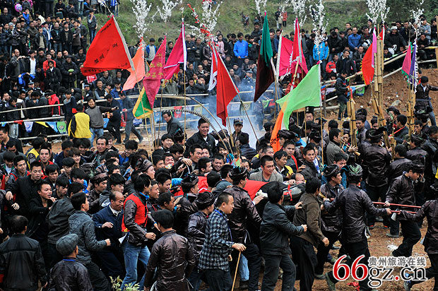 双方相斗的过程中,无论是赢是平,都鸣锣击鼓燃放鞭炮,牵牛绕场数周,欢呼胜利。客人燃炮庆贺,场上一片欢腾。散场后,主人要邀请庆贺者进寨,设酒肉款待。
