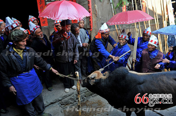 黄平县枫香寨自古以来共举办了三十届哈戎节,新中国成立以来才举办过一次,2009年“哈戎节”是第三十一届。亻革家人民风纯朴,热情好客,在“哈戎”节期间,全宗族在外工作和生活的亲属没有特殊情况都要回来参加活动,许多人家还会邀请亲朋好友前来祝贺。因此家家户户都要准备丰盛的食物和酒水,开门迎客,办酒席招待客人,来客不论亲疏,都会热情招待。前来祝贺的亲朋好友一般也不会空手来而,礼重的会牵上一头牛、抬上一头猪,礼轻的会背上一袋米、提上两壶酒或包上几包糖。当然主人家也不会在乎客人礼物的多少都一样热情招待,客人多的人家会摆上几桌甚至十几桌酒席,连续几天几夜欢乐不停。