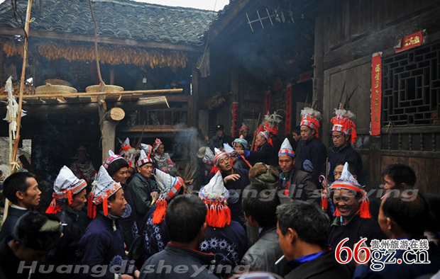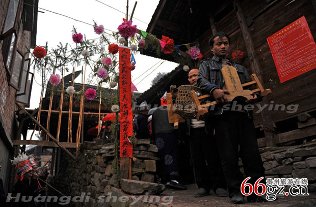 芦笙祭结束,参加祭祀的人要把祭祀的芦笙送到祭祀的主家即祖鼓鼓东家。以便举行三天三夜的吹芦笙活动。送笙的队伍来到了鼓东家,一场庄重的迎接仪式是必须要进行的。