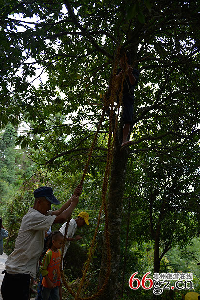 这时男女青年开始踩在垂下来的绳子上面悠悠地荡着或相拥相抱,用力而蹬,就会自然在150度内来回摆动,这种充满青春活力,无拘无束的浪漫气息弥漫节日的岜沙。到了夜晚,月光撒满了山林,秋千还在荡起,那朦胧的银辉中,秋千上的人儿更是情意绵绵。