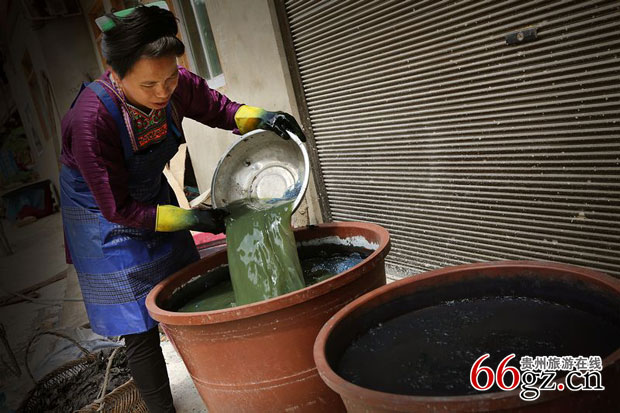 染布时,要在染缸里加入靛蓝(采用自种的靛蓝草叶加石灰泡制而成),每次浸染后清洗晒干,如此重复三到四次,布变成深蓝色;然后再将柿子皮、猴粟皮、朱砂根块等原料捣烂挤汁,用这种汁液把布染成青色;最后再用靛蓝继续加染多次,使布透出青而带红的颜色。侗布有紫、黑和青紫等多种色调,而控制颜色深浅的诀窍就是浸染的次数。
