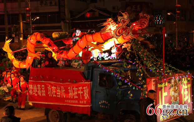 一些用来显示“实力”的“亮龙”上了花车,游在街上引人注目。