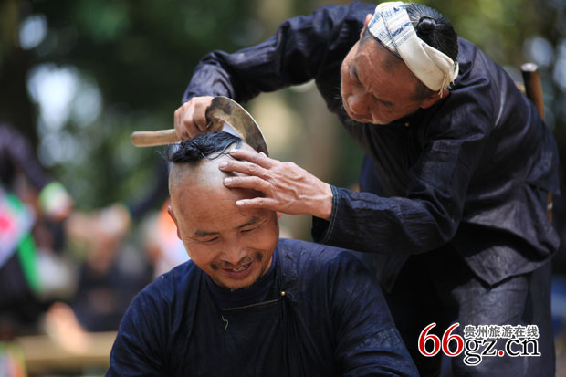 岜沙苗族成人礼,是贵州省从江县岜沙这支苗族分支所独有的人生礼仪习俗,岜沙男孩满15岁后,要举办“成年礼”,用镰刀将头四周剃光,留顶部长发挽成鬏髻称为“户棍”。 行成年礼那一天,父亲会为他打造的猎枪,佩刀等物品,标志着他的人生进入了独立的阶段。举办过“成人仪式”的岜沙男孩,完成了人生旅途中身份角色的转换,从此开始承担起岜沙人所有的权利和义务,懂得了自己的社会责任,可以谈婚论嫁,参加村寨的各种重大事务活动,成为真正的岜沙人。岜沙苗族的成人礼俗,集中体现了这个苗族分支传统文化的表现形式,所产生的文化现象,涉及到他们的衣、食、住、行、精神、信仰以及审美观念。他们通过这种“户棍”(鬏鬏)的形式来维系这支苗族的传统文化,它是岜沙人的情感纽带,也是他们的精神寄托,它是这支苗族具有顽强生命力的价值体现。