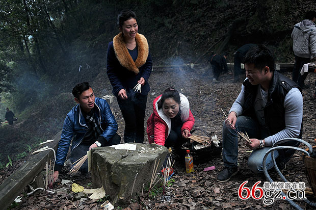 村里两队新婚夫妇也前往楠木凹祭祀。