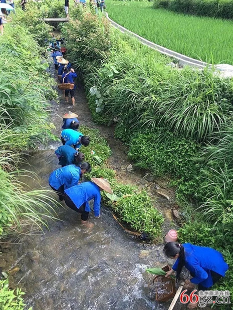 (音:囖潝),每到小暑日之后的第一个卯日返数第13天,一大早,全寨各家各户都要派女主人按房族长幼顺序排成长队,长者为尊,走在最前面,统一着盛装,脚穿新草鞋,肩挑小木桶和竹篮,沐着山村晨雾,浩浩荡荡前往溪边,清洗糯米、干蕨菜以及用于腌制祭品的小木桶等节日要用的祭祀物品。全寨几十个房族的几十支“敬禾”队伍几乎同时出动,声势浩荡,场面十分壮观。各个房族的“敬禾”地点各有不同,自古约定俗成,代代承传。“敬禾”仪式意在不忘祖先从遥远的地方迁徙沟而来,历尽艰辛劈山造田、拓荒种地的创业历程,祈求祖先保佑子孙后代幸福安康,同时期待风调雨顺,五谷丰登。