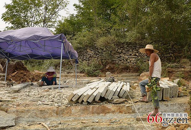 耇旧山是个石匠,据他介绍说,他们这里有名的石匠很多,比较有名的有耇天沙、耇当几、耇久宝娄、耇几马弄、耇锁宝等等,这些匠人可谓名声在外久了。黄平、施秉、余庆、凯里、台江、石阡、镇远等地好多村子的碾米房是这里的匠人做的。其个数有上百个之多。有的碾米房做得很科学,一个加工房舍居然借用水力,碾米、推磨、舂碓一并进行,这可是那个时代的最高工艺水平了。