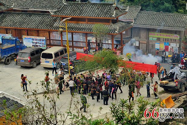 节日前,各户忙着抓鱼、杀鸡、鸭、猪、羊,或宰牛,打糍粑,并邀约亲朋前来共聚,全寨笼罩着一派忙碌的节日气氛。节日当天,斗主需将牛身洗净,并抹上青油,使牛身黑亮更显威武。早饭毕,牛主分别在众人簇拥下牵牛出户,同行人点燃火把、燃放大炮,为牛驱鬼开道。至斗牛场,扔掉火把,以泥饲牛,祭司洒酒敬神,方可进行激烈酣斗。下午三点,斗牛结束,身着银装的苗族姑娘踏着整齐的舞步,在年轻人的芦笙召唤下翩翩入场。紧接着,村民亦参与互动,尽情欢愉。一时,芦笙、欢呼声响彻山谷。就在人们尽情狂欢的时候,古树下、谷堆旁,一对对情侣正唱着动听的情歌,为美好的生活编织着未来。傍晚,家家户户都传来酒歌和划拳声。此刻,老人们正端着酒碗吟唱古歌,妇女们则忙碌着为客人敬酒,年轻姑娘的木楼下,早已聚集下情歌朗朗年轻小伙……。如此全寨欢腾,通宵达旦。第二天,主客们又沉浸在酒宴、斗牛、歌舞中。