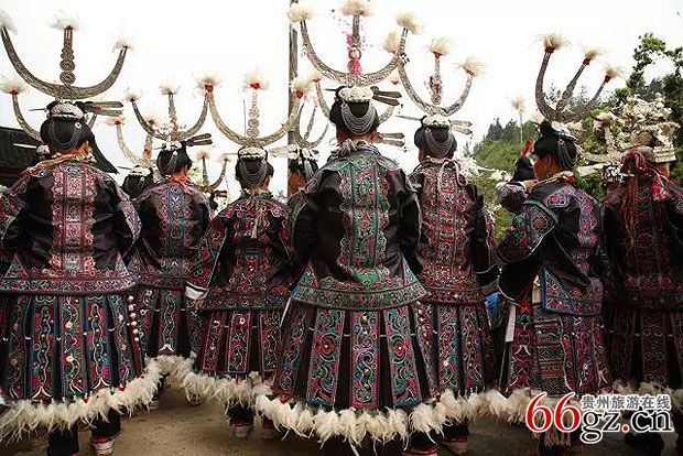 一位苗家长者向我们介绍:百鸟衣的制作工艺比较复杂繁琐,要经过染布、捶布、刺绣挑花、裁缝、镶花边、镶吊羽绒等工序,每道工序都十分讲究,制做一套需耗时一年,是绝对的手工制作。