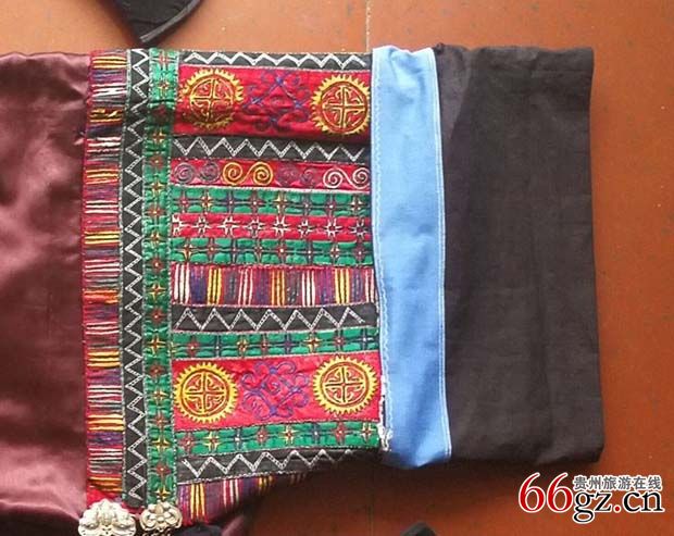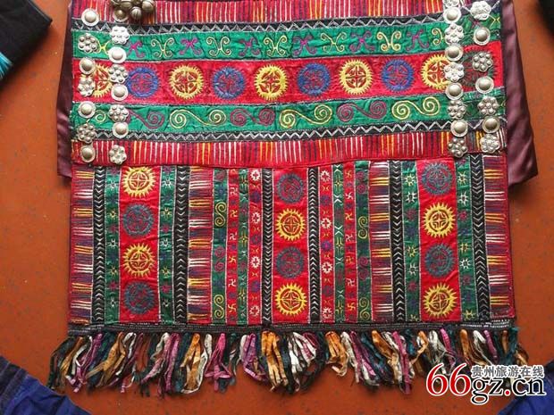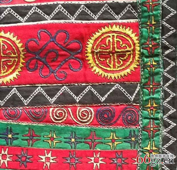 衣袖图案细节图(双袖饰红、绿相间板丝绣象征宇宙天体的神秘图案。)