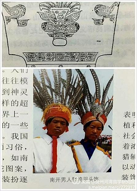 苗族男子的羽毛头饰与良渚饕餮纹中的羽毛头饰
