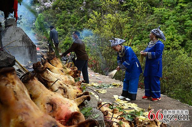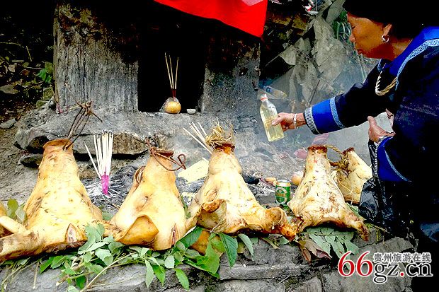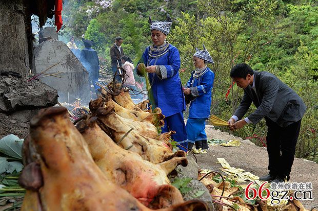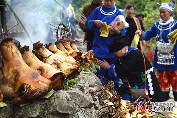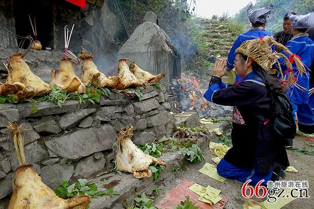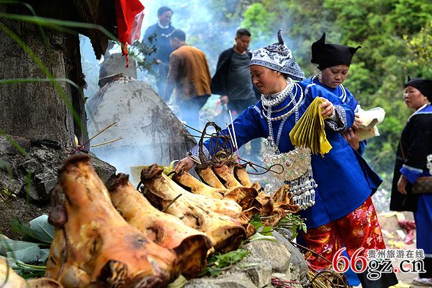 祭祀会燃放鞭炮硝烟弥漫山谷苗家人上香烧纸行礼求安祈福