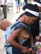 白裤瑶族不仅是对女性的生殖器有崇拜,对女性崇拜又衍生出来的还有对女性乳房的崇拜,对女性乳房的崇拜是因为她是哺育后代的典型象征。瑶族妇女夏天的服饰,上衣一前一后两块布,很随意的搭在肩上,而里面什么都不穿,侧览女性双乳若隐若现。一但弯腰干活,便是全览无余。“两片瑶”就源于白裤瑶族妇女夏季服饰。白裤瑶族妇女不遮双乳,不是情欲上的展露,而是对母性和生殖上的至高无上的崇拜。