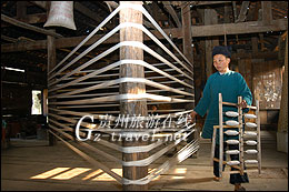 寻访陆铎公的足迹 为了印证传说,笔者前不久邀约贵州省水家学会理事会员韦章炳先生等人一起专程到水东村进行采访调查。 水东村位于独山县水岩乡东部,距乡政府10公里,与全国惟一的水族自治县——三都接壤,全村共有9个村民组,222户,1032人,均自称为布依族。但50岁以上的老人都说祖辈是讲水话的,由讲水话变为讲布依话也是两三辈人的事,并且在一些人家里,以前还藏有水书,只是整个寨子经历两次大火的洗礼后,现在遗留下来的东西已经很少很少了。 在采访中,有两个问题值得我们思考: 一是有关水族造字先生陆铎公的传说为什么在布依山寨流传下来了?二是这里的人们先是水族,为什么后来又成了布依族呢? 我们知道,在各种语系中,任何语言按其亲属关系可分为若干语系,又按亲属关系的远近分为语族和语支。我国民族语言种类繁多,据不完全统计,约有80多种语言。时下,人们将56个民族的语言划分为5大语系,10个语族,14个语支(不含分支未明的语支),即汉藏语系、阿尔泰语系、南亚语系、印欧语系、南岛语系。布依族和水族都属汉藏语系中的壮侗语族,只不过布依语属于壮傣语支,水族属于侗水语支而已。但这并不影响它们先天的亲属关系。其实,今天的水语与布依语有很多语言是相通的。故水东人的祖辈说水语,现在说布依语,是很自然的一种语言归类现象。 村民们听说我们来寻找陆铎公居住和造字的山洞,便热情地找来大捆的干竹子,将竹子捶破后,绑成火把,带我们来到寨子背后的深洞。深洞洞口高约10余米,洞厅宽20多米,在一颗巨石下,红红绿绿地贴着不少的纸符,鸡笼、鸭笼、猪崽笼堆满一地。向导介绍说,那是各地水书先生逢卯节后悄悄来拜祭所带的祭礼,祭诸神,也祭陆铎公。因为这种祭祀活动长期被当成迷信,水书先生被当成牛鬼蛇神,所以,来这里祭祀的人大部分都是秘密活动。 越往里钻,洞就越深,里面又不时传来流水拍岸的声响。大约钻了1个多小时,一路只看到地下阡陌纵横,头上钟乳石千奇百怪,有一片钟乳石上下相连,高约10至20米,形成森林之状,让人如入迷宫仙境。越往前,流水声越大,向导到此不肯前行了,我们找不到有人居住过的珠丝马迹,无奈只好随同撤出。 出来后,就发现有很多村民聚集于洞口,在等我们寻找的结果。其中,78岁的吴天明老人说:“歌谣里的陆铎公造字是在半坡上的那个洞,不是这个洞。” 于是,我们又请老人作向导,爬上了几百米高的山峰。 费尽九牛二虎之力,爬到了半坡的山洞口,发现这里是天然的绝好居住地,洞长约20米,宽七八米,无内通道,但石壁上有几个不深的小洞。而在洞口雨水淋不到的地方,却有两块平整的石块,坐在上面可以浏览山下四周。向导说山脚下有条常年不会干涸的溪流。有山有洞有水,这很符合人的居住条件。但任凭我们如何仔细地寻找陆铎公造字的遗迹,却怎么也没有让人振奋的发现。 正当我们沮丧地准备离开时,一个中年汉子跑过来说,自己的祖上有人是“水书先生”,家中还保存有四册水书和一个铜质秤砣。这意外的消息让我们兴奋不已,大家忘记了劳累,赶紧随他去家里。 这四册“水书”用一根细麻线捆着,解开一看,用粗草纸抄写的书已被虫蛀得七通八眼,从纸的制作上判断,这应该是清初时期的遗物。在一张破烂的桌子上,一颗铜质秤砣静静地孤立在上面。我拿过一看,秤砣为八角形,还有铜扣环,重约六两,上面阴刻三个谁也不认识的水书,虽然长期不用,但秤砣依然发出淡淡的青光,这很容易使人想到主人在打制它时的用心与偏爱。 征得主人同意后,我们把水书和秤砣带回县城拍照。 怀揣这些珍贵的典籍和遗物,离开水东村时,我忽然想起一句俗话:“秤不离砣,砣不离秤。”但今天的砣却离开秤不知多少年了,砣仍孤独地守望着,就像人们坚信这里是陆铎公造制水书的地方一样,每年仍有不少水书先生悄悄到深洞来拜祭。那虔诚的膜拜,不正说明秤与砣、师与徒的密不可分的关系吗?