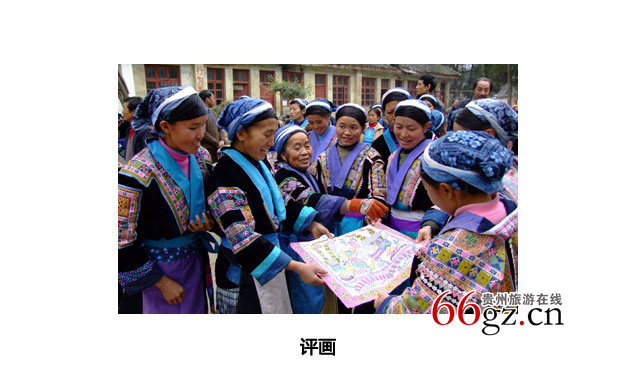 龙里巴江蜡染农民画承袭和发展苗族传统蜡染绝技,在布面上以蜡染方式表现农民画面。以蜡刀、蓝靛等作画工具再现农民画,色彩朴素典雅。