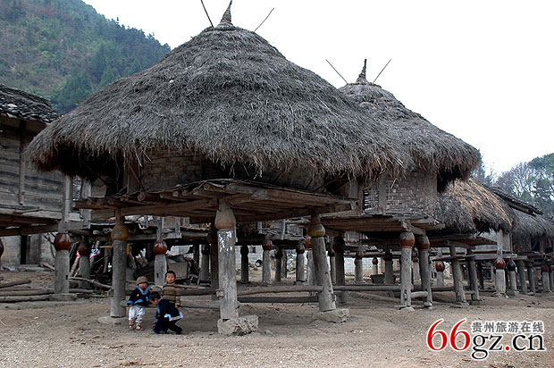 呈圆柱形锥顶,盖以茅草的圆形粮仓