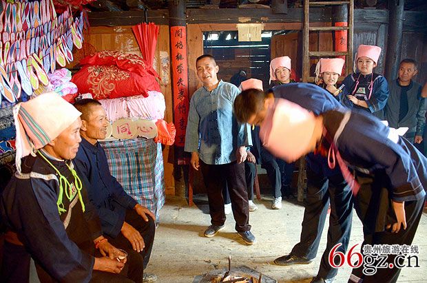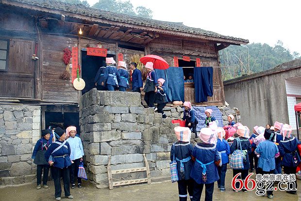 依照新郎、新娘的意愿,婚礼在新郎的老家--惠水县雅水镇新民村小岩脚布依寨的老房内举行。