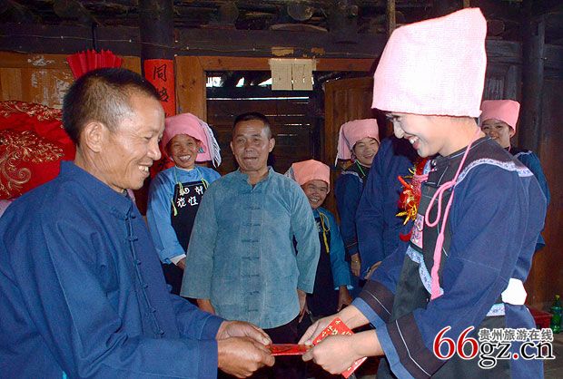 婚礼仪式按当地布依族的传统习俗进行。婆婆准备了101对鞋垫,寓意新媳妇是百里挑一,以表达她对年轻漂亮、有知有识、聪明贤慧新媳妇的满意度。