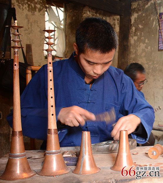 铜箍只作装饰品用。音孔需按精确的尺寸打钻,孔与孔之间的距离以及管身的空度直接影响唢呐的音质和音量。