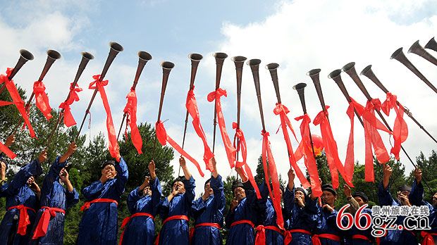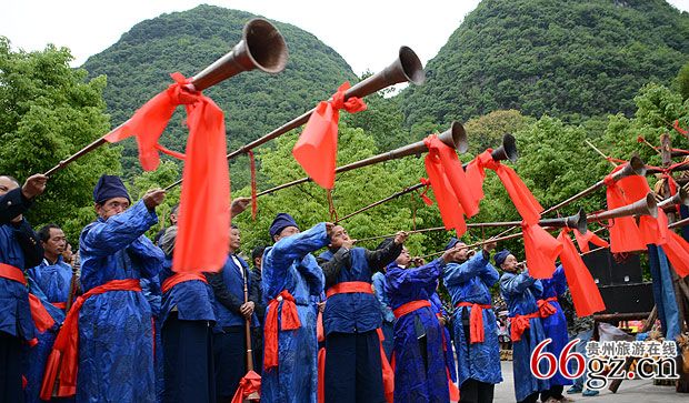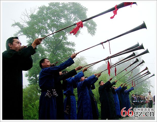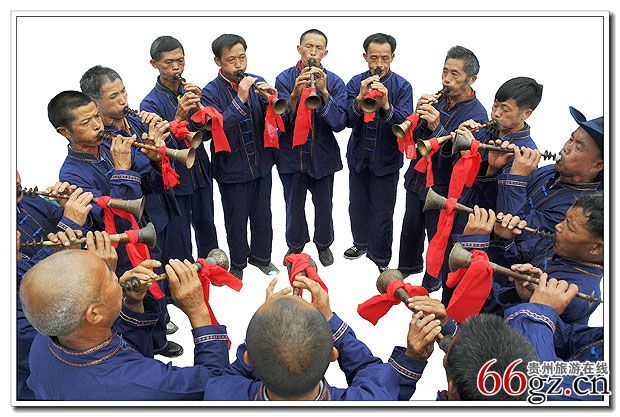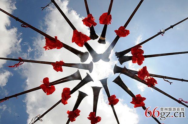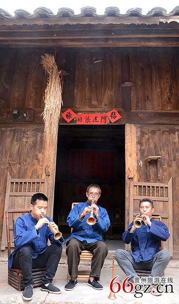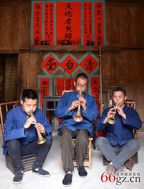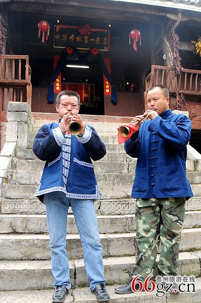 清咸丰年间,桐木寨老辈匠人曾为鸭寨苗胞制作的一对长号,至今尚存。