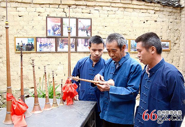 唢呐制作的第12代传人杨光明,自费办起了“音律世家” 唢呐陈列馆。集制作作坊、展示布依族的农耕文化、唢呐文化于一体,旨在弘扬布依族传统文化,促进社会和谐发展,促进民族团结进步,目的是让有三百多年历史的唢呐文化传承发扬光大。