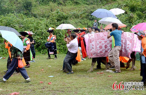 绕完一周后,换上另一家亲戚的礼物捆上牛背,再次巡游,如此循环反复,直至前来贺喜的亲戚的礼物展示完毕。