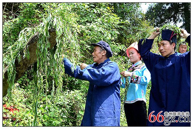 到下午太阳偏西时,人们就要去寨子下面的土地石卖杨柳,由魔公带队,到土地石那里,先烧香焚纸,敬酒后说卖柳词:土地啊土地,拿你身上的的一切疾病去,把我身上的健康送还我。