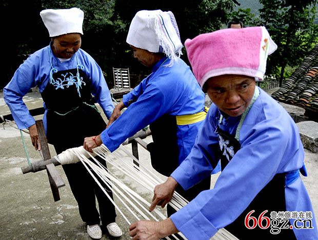 在贵州省惠水县羡塘燕子洞周边的毛栗、纳元、龙虎、绸绢等布依族村寨中,仍传承着一种原始的织染工艺;