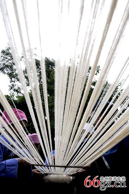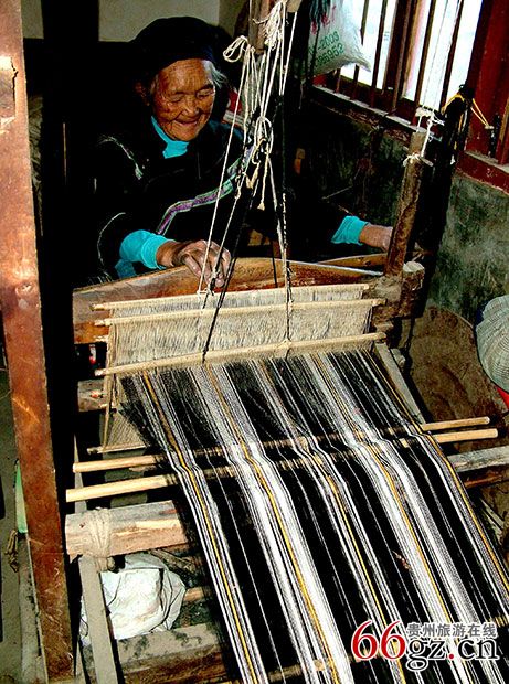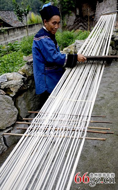 村寨内的布依族妇女,都是纺纱织布的能手。