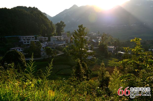 傍晚逆光中的王卡新寨