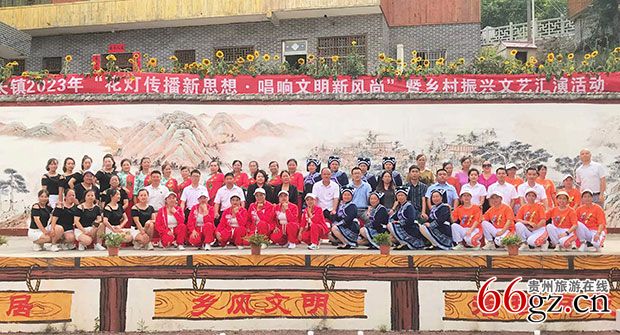 独山学子以有著名的"独山文化现象"为荣。独山中学66届高中毕业同学举办2023独山花灯表演,合影感恩独山,感恩老师。黄凤仙 供稿