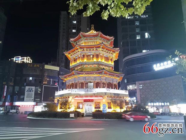 全国旅游文化县城、历史文化名城独山的地标八角亭夜景。贵阳晚报记者 摄