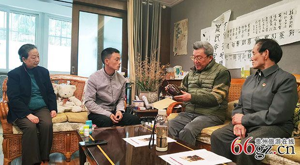 独山县人民政府聘任的《莫友芝纪念馆》顾问、贵阳科普作家协会秘书长罗万雄在向贵州省政府老副省长马文骏汇报发掘、开发、利用"独山文化现象"研究成果,发展农旅研学产业的工作。廖书铭 摄