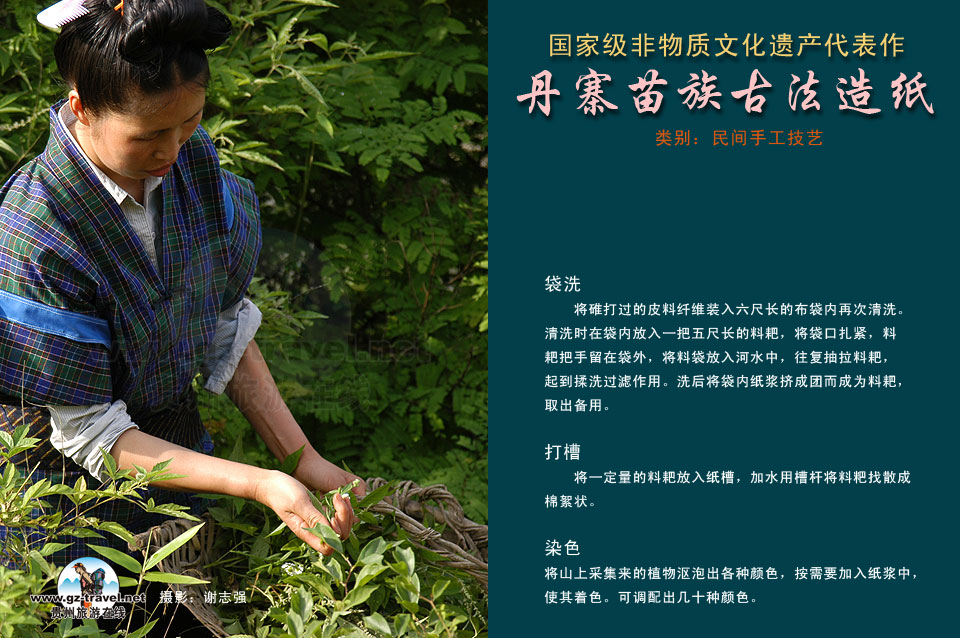 造纸术是我国古代先民对世界人类文明的一大贡献,在史籍中对树皮为原料造纸的方法却记叙很少,以至于我们不能详尽地了解我国古代生产皮纸的方法。在贵州黔东南苗族侗族自治州的丹寨县自今完整的保留了这一古法造纸的传统工艺。