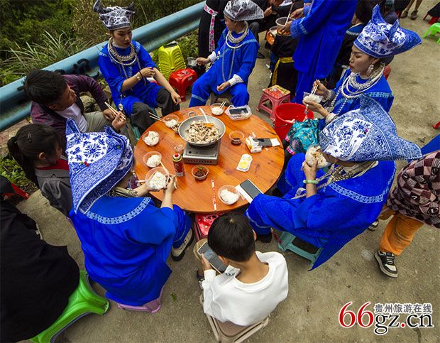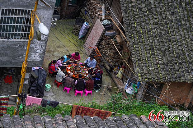 清晨五点半,日出召集了整个苗寨。 吊脚楼的轮廓在晨雾中若隐若现,青瓦木墙透着岁月的温润。质朴的老乡早已起身,背着竹篓穿过石板巷,见面递一支烟、寒暄几句。最动人的画面属于孩子,他们穿着簇新的青花绣盛装,在山路上奔跑嬉戏,银饰随着步伐叮当作响,清澈的眼神里满是对于过节的新奇与期待。这里没有表演,只有生活最本真的样子。