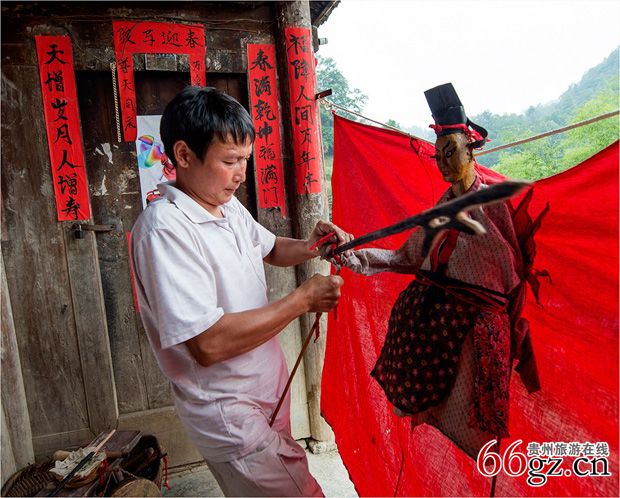 石阡国家级非物质文化遗产木偶戏表演作准备工作