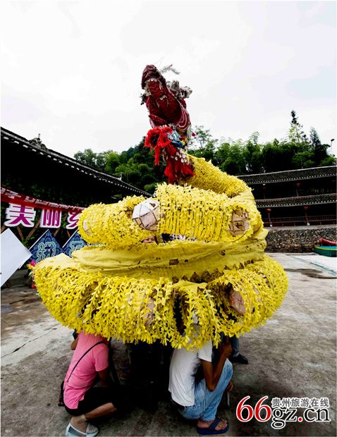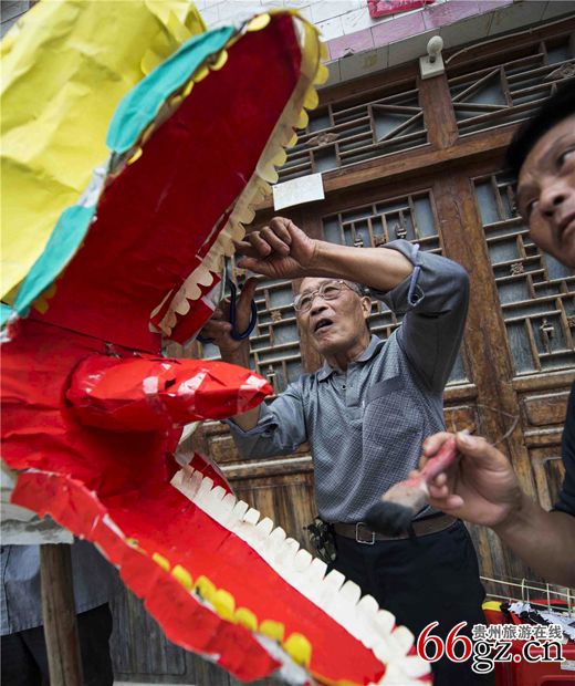 玩龙:主要是先走村串寨送祝福,然后齐聚县城竞技。扎好了“毛龙”,先请先生选定一个好日子(一般在正月初六、初七),举行开光、请水仪式后,才能走村串寨或集中表演。“开光”时,在堂主(头人)家屋内焚香烧纸,先生要念咒语,在“龙头”、“龙尾”上用香各烧三孔,谓之“通气”(即成“龙神”),接着出门到本寨附近的祠堂、洞、有水的河沟或水井处“敬祖请水”。然后才到村寨或城内家家户户“玩龙”。“毛龙”到达各家,先由主人家烧纸放炮迎接,这时“毛龙”在锣鼓声中翻滚舞动。待锣鼓声一停,执龙宝的人即便在主家大门前说起“龙句子”。若遇主人家讲究燃烛,则需开财门进入主家堂屋,相关仪式完毕后,方可出门,出门时,主家也要放炮欢送。在各个地方的毛龙齐聚县城后,便开始竞技,主要表演有:“二龙抢宝”、“懒龙翻身”、“单龙戏珠”、“天鹅抱蛋”、“倒挂金钩”、“犀牛望月”、“螺丝旋顶”等。