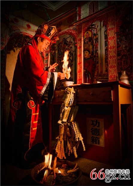 “悬心吊斗”信士家中因某种事心愿未了,或因某种事物分不清正邪,当家人心中不安,忧愤成疾等,傩法师运用“悬斤吊斗”法术为信士解忧。法事进行前,准备一个罐子,内装满大米和一杆木称,待法师念动咒语挽起法诀,祝告上苍后,即用秤杆插入罐中,将装满大米的罐子提起而不下落,法事即告完成,信士的忧愁和不安即可解除。