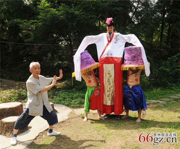 余庆敖溪矮人舞源自“傩戏”表演中“矮人神”这一形象。汉武帝拓边屯军,开发西南夷,汉文化就通过巴蜀、荆楚进入今黔北地区,军士的“军傩”,将傩文化也同时带入,逐渐影响着当地乡民的精神文化生活。随傩戏在黔北民间的盛行,傩戏中“矮人神”这一形象在乡民中也越来越受欢迎。“矮人神”在傩戏中担任着开场戏和压场戏的表演,有很浓的喜剧色彩,特别在戏后或戏间,“矮人神”托筛向众乡民索取灯油费,其模样滑稽,动作诙谐,言辞动人,深受乡民喜爱。人们随之就利用田间地头、堂屋院坝模仿表演。在发展中不断改进矮人形象,不断加入地方文化元素,注入民间的思想情感,使其具有了更深的思想文化内涵,使之形成了今天的矮人舞。明万历时期,播州(今遵义)土司制已岌岌可危,政治上的混乱,经济上的困顿,使民众穷困不堪,“矮人舞”在这时将黔北民间传说《三种人》的内容编进舞蹈之中,以宣泄心中的愤懑。传说表达的意思是:很久以前,世界上有三种人,即天上的“竹竿人”,地上的“扁担人”和地底下的“扫帚人”(小矮人),他们原本平和友好,往来自由,甚至可以互通婚姻。但后因贫富差别,通婚和往来的多是“竹竿人”和“扁担人”,扫帚人(小矮人)则受到歧视,不能再与“竹竿人”和“扁担人”来往通婚,再也不能享受人生自由。民间劳苦民众用竹竿人和扁担人比喻统治阶层和有钱人,用扫帚人自喻,表现生活在封建社会底层的人们,受到残酷的阶级压迫和经济剥削,如同小矮人一样伸不直腰杆,如沦地狱般过着牛马一样的生活,内心强烈的愤怒和不满,就通过“矮人舞”,曲折地表现出来。