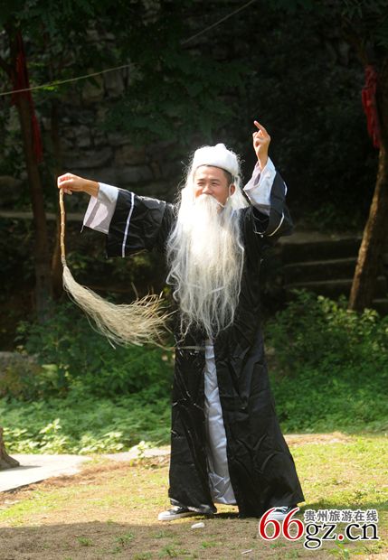 “矮人舞”还用念白的形式完成舞蹈无法表现的思想情节:“小矮人”与“竹竿人”经“扁担人”说合,喜结良缘。这一情节,表述了生活在地底下受苦受难的矮人,他们追求平等幸福生活的愿望和理想。“矮人子,矮人王,三尺土布做衣裳,脑壳都有那箩兜大,身子打齐桶梁梁,别看我们的个儿小,搭起板凳(塞),夺太阳(罗)呵……”人舞唱词穿插于舞蹈之中,舞蹈曲调多取黔北山歌小调,伴以民间方言,古朴、诙谐、粗犷而不失美感。