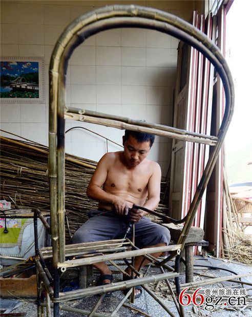 以娄山关特有的野生青藤和方竹为基本原料,经过传统手工扳压、编织而成的藤编制品。其制品工艺精美,透气吸汗、造型美观,式样高雅,色泽别致,舒适凉爽,轻巧耐用。对皮肤病有潜在的疗效。
