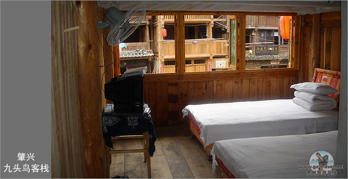 客栈介绍:九头鸟客栈,因老板是一湖北人,所以取意湖北“九头鸟”之名。位于肇兴上寨村仁团鼓楼旁,肇兴河的上游,真正的临江吊脚楼,全木质房子。与风景秀美的肇兴宾馆的贵宾部隔河相望,与仁团戏台毗邻,门前还有打糍粑的石椿。客栈一楼是休闲吧,配有茶、酒水、餐饮等服务,附属有树根形茶台,免费提供可供上网的电脑。 二至四楼是客栈,有客房8间,其中标准双人间6间,四人间2间,分为高、中、低档三种,配有电视、独立卫生间(在肇兴,因为是木质房子,所以能拥有独立的卫生间的客栈极少)、上网等附属设施,还有自助洗衣、自助做餐等服务提供。高档客房配有侗族特有的木制浴桶、马桶等设施。