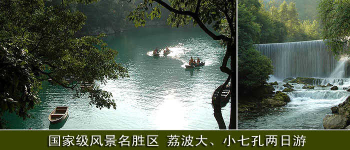 早上约7:30从荔波下榻的酒店前往指定地点用早餐,约8点乘车前往【大七孔景区】(车程约30分钟),步行游览以原始森林、峡谷、地下河为主体的大七孔,主要景点有:恐怖峡、天生桥、妖风洞等美景,传说游人到此不能高声叫喊,否则恐怖峡就会飞沙走石,妖风洞就会旋起狂风,洪水突然袭来,水春河就见不着鱼的影子。令游人感到大七孔景区的神秘莫测(全程游览2个小时).中午约12:30用餐,约2点乘车返回贵阳(正常情况下车程约3.5小时),结束愉快的荔波之行。